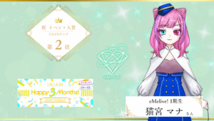 1期生 猫宮マナさんがC4〜C5 IRIAM Happy 3Months!第2位に入賞しました✨