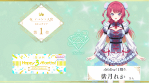 1期生 紫月れかさんがC1〜C3 IRIAM Happy 3Months!第1位に入賞しました✨